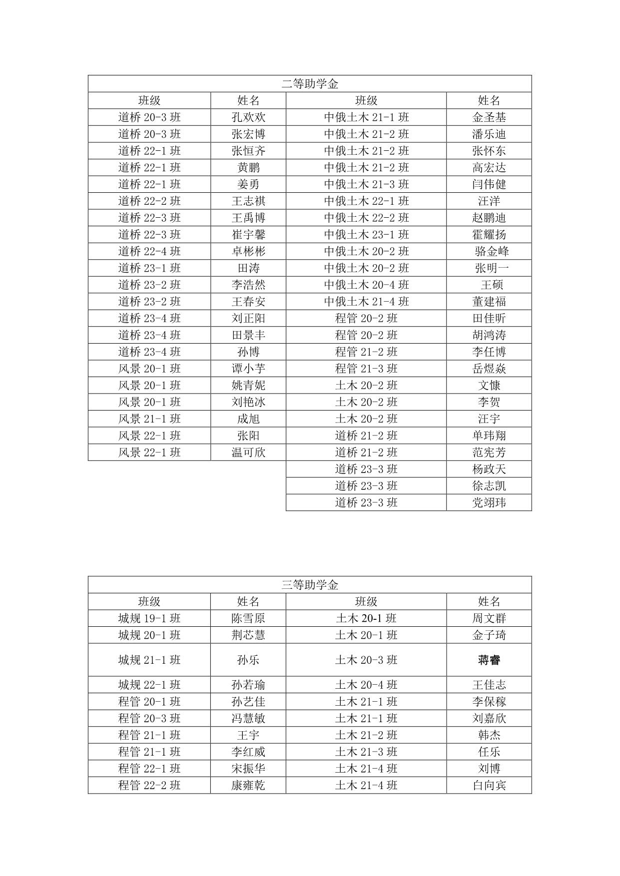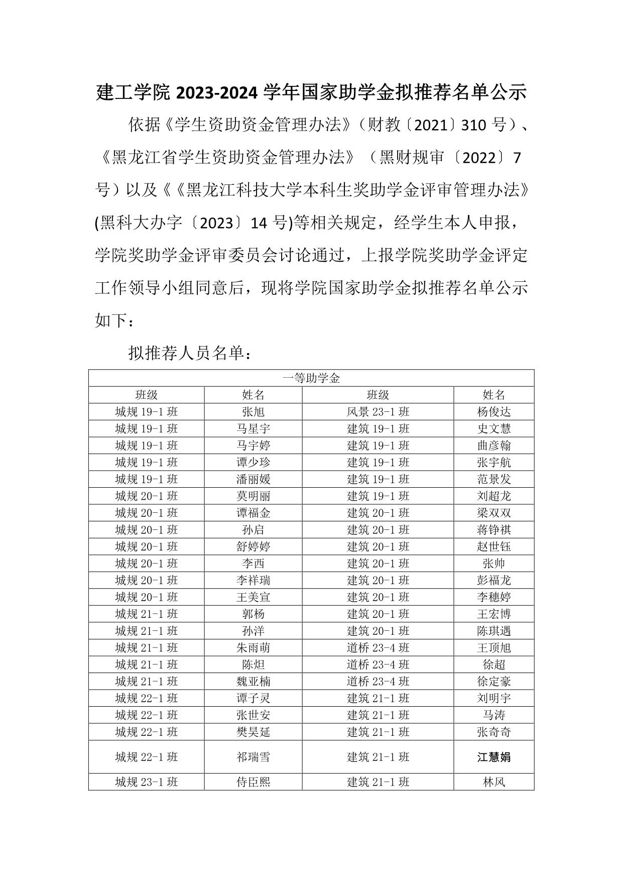 建工学院 2023-2024 学年国家助学金拟推荐名单公示