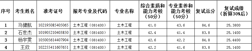 best365足球官网2025年硕士研究生招生考试(土木工程专业)第一次调剂复试成绩