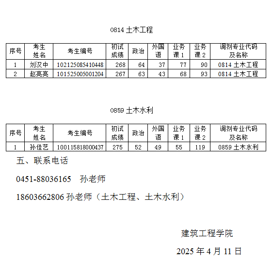 best365足球官网2025年硕士研究生土木工程(0814)、土木水利(0859)第三轮调剂复试考生名单