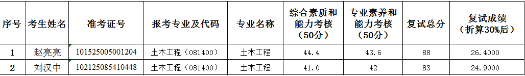 best365足球官网2025年硕士研究生招生考试(土木工程0814)第三次调剂复试成绩