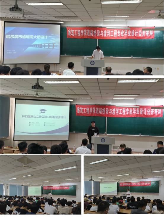 根据学校教学计划统一安排,道路桥梁与渡河工程专业2024届本科生毕业设计答辩于2024年6月7日-12日顺利举行。6月7日上午9:30-11:00在科技大厦E301进行了公开答辩,6月11日8:30-6月12日12:00分别在教学主楼E0412、E0409、E0421进行了小组答辩。学校督学黄乾贵教授、姜封国副院长、董连成副院长参加了公开答辩并给予指导,经全体师生共同努力,答辩工作圆满结束。
