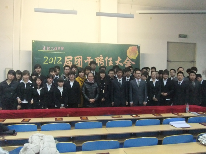 2012年3月21日中午,best365足球官网分团委在主楼WN0101举行了2011-2012学年团干部聘任大会。院团委书记高汝男、兼职辅导员李雨亭以及全体新老团干部参加了本次聘任大会。受聘仪式在嘹亮的中国青年主义青年团团歌——《光荣啊!中国共青团》中隆重开始。兼职辅导员李雨亭宣读了《best365足球官网分团委关于2011-2012学年团干部的聘任决定》;到会嘉宾向受聘的分团委、大学生科技协会、大学生英语口语协会的团干部颁发聘书;上一届团委副书记城乡08-1班薛兴海代表老干部做了发言;新受聘的团干部代表分团委副书记交通09-2班林俊全、大学生科技协会主席建筑学09-2班王田、大学生英语口语协会会长土木工程09-1班徐丽丽做了表态发言。 学院分团委书记高汝男做了总结讲话。她首先对新受聘的团干部表示祝贺。并号召全体团干部本着“团结、进取、笃实、创新”的工作作风,以“创特色、树品牌、上水平”为目标,转变观念、拓宽思路、不断创新、勇于开拓,为学校转型提升和更名大学贡献青春、智慧和力量。